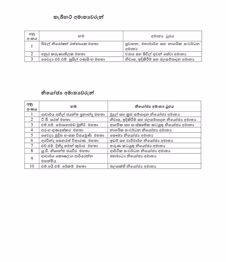 - Mr. Herath Mudiyanselage Susil Ranasinghe: Minister of Housing, Construction, and Water Supply.